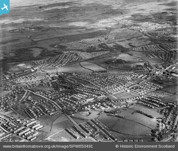 SPW053491 SCOTLAND (1937). General view, Merrylee, Eastwood, Lanarkshire, Scotland, 1937. An oblique aerial photograph, taken facing south.