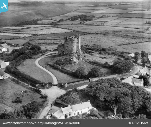 WPW040086 WALES (1932). View of Roch Castle and Castle Farm, Roch, Pembrokeshire, oblique aerial view. 5"x4" black and white glass plate negative.