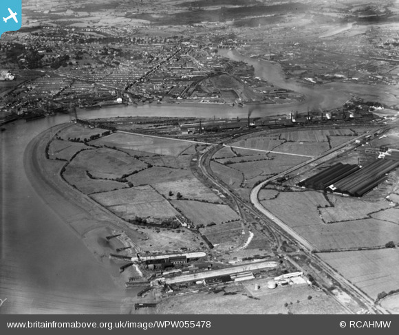 WPW055478 WALES (1937). View of Newport showing Orb Steelworks, Newport Tubeworks and dry docks, oblique aerial view. 5"x4" black and white glass plate negative.