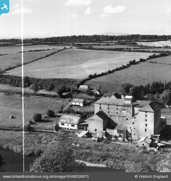 | Pennawd | [XAW018971] Messrs. W. H. Mosse Ltd, Flour Mill, Bennettsbridge, Kilkenny, Ireland, 1948. Oblique aerial photograph taken facing South/West. This image was marked by Aerofilms Ltd for photo editing. |