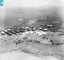 [WPW041415] View of Anglo-Persion Oil Depot, Llandarcy, oblique aerial view. 5"x4" black and white glass plate negative.