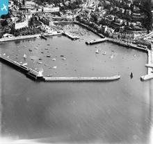 The Old and New Harbours, Torquay, 1934. This image was marked by Aer...