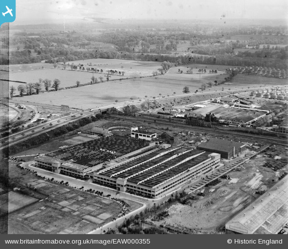 EAW000355 ENGLAND (1946). The Odhams Press Printing Works and the surrounding countryside, Watford, from the west, 1946. This image has been produced from a damaged negative.