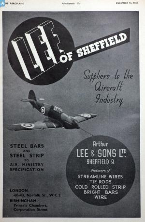 Lee and Sons Ltd. (Arthur), Crown Steel and Wire Mills, Bessemer Road, Sheffield 9, with their own approved A.I.D. Inspectorate, supply steels for all aircraft engineering purposes. This firm has a very wide range of output. They are regularly producing bright drawn steel bars to Specifications 3.S.1 and 2.S.21, carbon and nickel case-hardening steels to S.14 and S.15 respectively, mild steel strip to D.T.D.12.A and D.T.D.141, and normalised mild steel strip to 3.S.3.