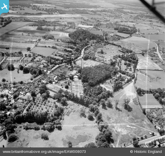 | Title | [EAW008073] Warren Hill, Ipswich Road and environs, Woodbridge, from the north-east, 1947. This image was marked by Aerofilms Ltd for photo editing. |