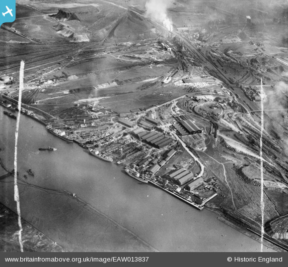 EAW013837 ENGLAND (1948). Smith's Dock Co Ltd Shipbuilding Yard at South Bank, Dormanstown, 1948. This image was marked by Aerofilms Ltd for photo editing.