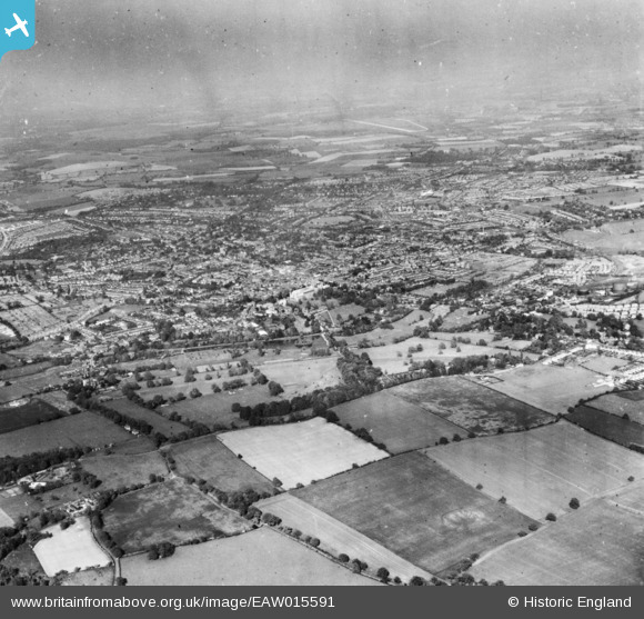 EAW015591 ENGLAND (1948). The site of Verulamium Roman Town and the city, St Albans, from the south-west, 1948. This image has been produced from a print.