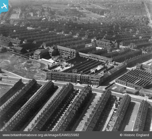 EAW015982 ENGLAND (1948). The A. Kershaw & Sons Ltd Optical & Scientific Instrument Works on Harehills Lane and environs, Harehills, 1948. This image has been produced from a print.