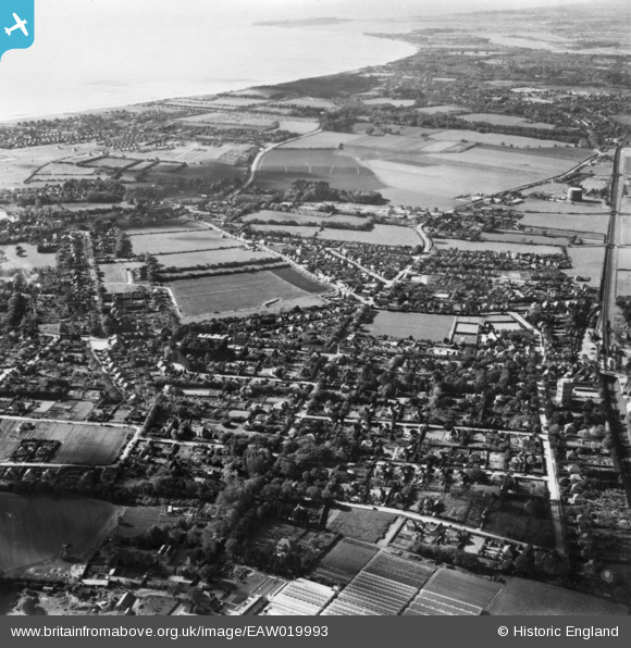 | Title | [EAW019993] The town, New Milton, from the north-east, 1948. This image has been produced from a print. |