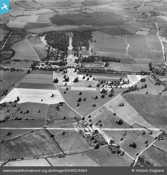 | Title | [EAW024084] Home Farm and Wrest Park, Silsoe, 1949. This image has been produced from a print marked by Aerofilms Ltd for photo editing. |