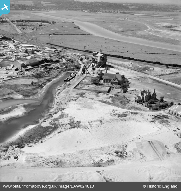 EAW024813 ENGLAND (1949). The Church of the Holy Spirit and the Concrete Works, Rye Harbour, 1949