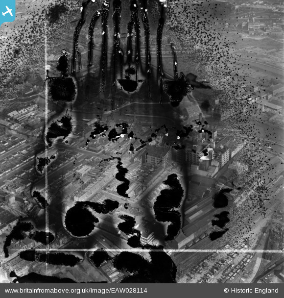 | Title | [EAW028114] The Kemball, Bishop and Co Crown Chemical Works and the surrounding area, Bromley, 1950. This image has been produced from a damaged negative. |