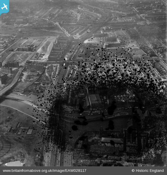| Title | [EAW028117] The Kemball, Bishop and Co Crown Chemical Works (site of) and the surrounding area, Bromley, 1950. This image has been produced from a damaged negative. |