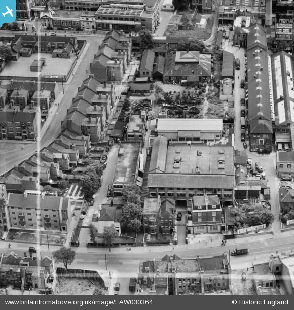 EAW030364 ENGLAND (1950). Henley & James Ltd Manufacturing Chemists on Coldharbour Lane, Brixton, 1950. This image was marked by Aerofilms Ltd for photo editing.