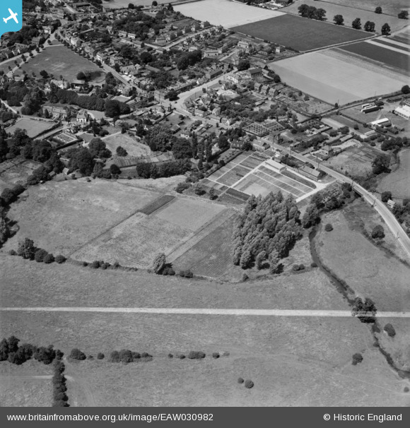 EAW030982 ENGLAND (1950). Cramphorn Ltd nursery on the south side of Bridge Street and the village, Writtle, 1950. This image was marked by Aerofilms Ltd for photo editing.