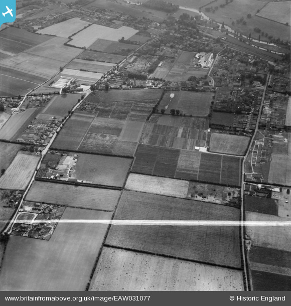 EAW031077 ENGLAND (1950). Nursery off Pot Kiln Road and the village, Great Cornard, 1950. This image was marked by Aerofilms Ltd for photo editing.