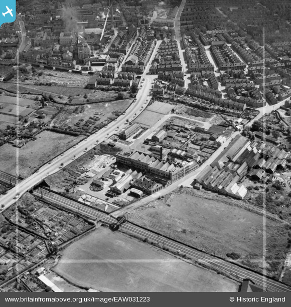EAW031223 ENGLAND (1950). The Gerard Brothers Ltd Soap Works on Wilkinson Street, Nottingham, 1950. This image was marked by Aerofilms Ltd for photo editing.