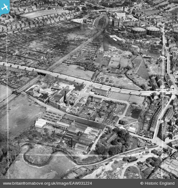 | Title | [EAW031224] The Gerard Brothers Ltd Soap Works on Wilkinson Street and environs, Nottingham, 1950. This image was marked by Aerofilms Ltd for photo editing. |