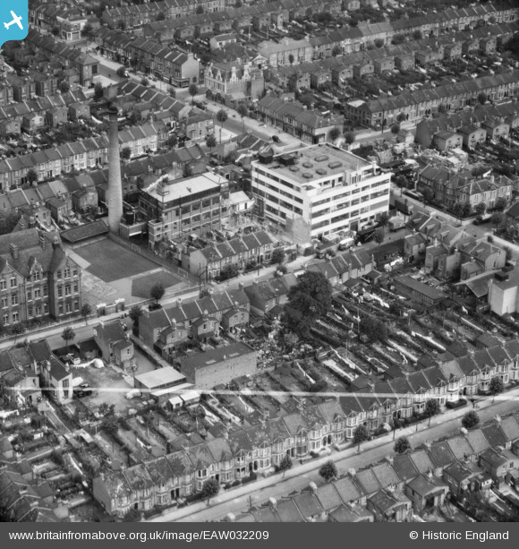 | Title | [EAW032209] The Trebor Factory and surrounding terraced housing, Upton, 1950. This image was marked by Aerofilms Ltd for photo editing. |