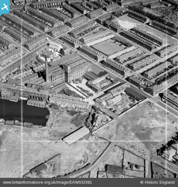 EAW032381 ENGLAND (1950). Elton Fold Mills off Harvey Street, Bury, 1950. This image was marked by Aerofilms Ltd for photo editing.
