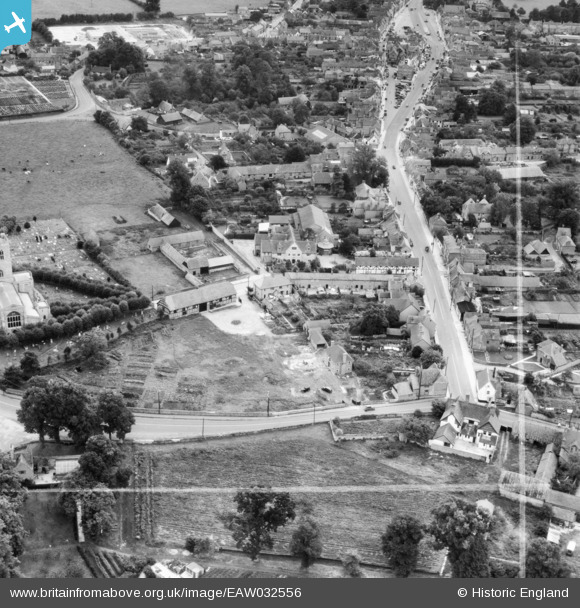 EAW032556 ENGLAND (1950). Church Road and the High Street, Thame, 1950. This image was marked by Aerofilms Ltd for photo editing.