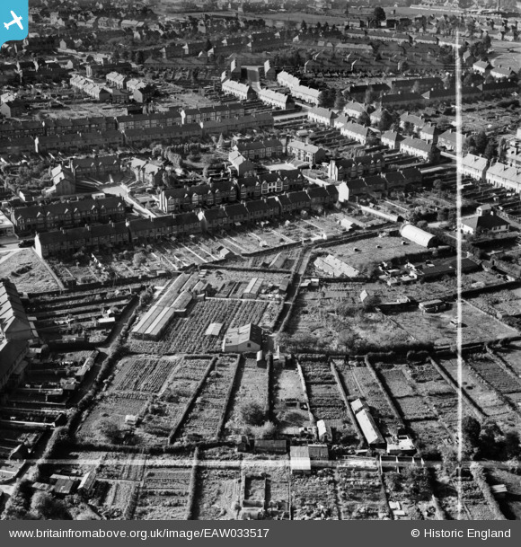 EAW033517 ENGLAND (1950). G.W. and A.E. Bott Nursery and environs, Stoke Heath, 1950. This image was marked by Aerofilms Ltd for photo editing.