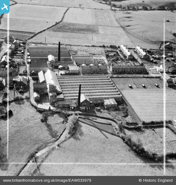 EAW033979 ENGLAND (1950). The Ribblesdale and Bee Mills, Ribchester, 1950. This image was marked by Aerofilms Ltd for photo editing.