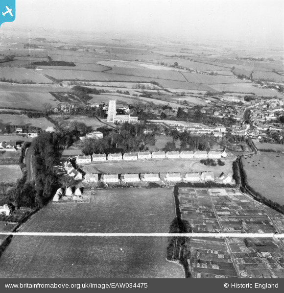 | Title | [EAW034475] Meadow Close and St Peter & St Paul's Church, Lavenham, from the south-east, 1951. This image has been produced from a print marked by Aerofilms Ltd for photo editing. |