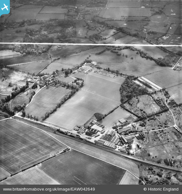 | Title | [EAW042649] The Stationery Works by Sawston Siding and environs, Sawston, 1952. This image was marked by Aerofilms Ltd for photo editing. |