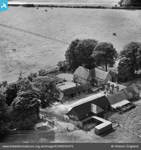 EAW043470 ENGLAND (1952). Bishop's Down Farm, Bishop's Waltham, 1952. This image was marked by Aerofilms Ltd for photo editing.