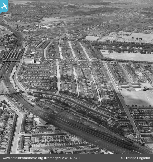 EAW043570 ENGLAND (1952). Residential streets between Barking Railway Station and Barking Park, Barking, from the south-east, 1952