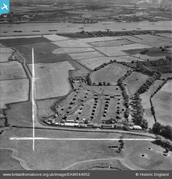EAW044652 ENGLAND (1952). J. Wells and Sons Ltd Joyce Green Lane Firework Factory, Dartford Marshes, 1952. This image was marked by Aerofilms Ltd for photo editing.