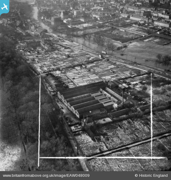 EAW048009 ENGLAND (1952). The Arthur Lyon and Co Engineering Works and environs, Stamford, 1952. This image was marked by Aerofilms Ltd for photo editing.