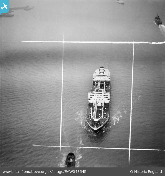 | Title | [EAW048545] The London Splendour Oil Tanker (London & Overseas Freighters Ltd) off Shell Haven, Sea Reach, 1953. This image was marked by Aerofilms Ltd for photo editing. |