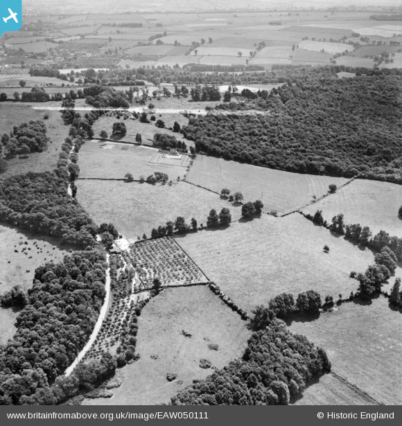 EAW050111 ENGLAND (1953). Fields by Knapp Farm House, Weston-sub-Edge, 1953. This image was marked by Aerofilms Ltd for photo editing.