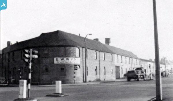 EAW050439 ENGLAND (1953). E. W. Wynn (Ironfounders Ltd) Iron Foundry at Bridgtown, Cannock, 1953. This image was marked by Aerofilms Ltd for photo editing.