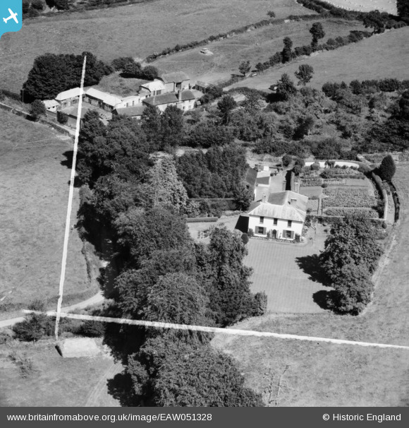 EAW051328 ENGLAND (1953). Stockleigh House and Pleases Farm, Stockleigh Pomeroy, 1953. This image was marked by Aerofilms Ltd for photo editing.