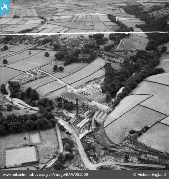 EAW051508 ENGLAND (1953). The Dobroyd Ltd Woollen Mill and environs, Hepworth, 1953. This image was marked by Aerofilms Ltd for photo editing.
