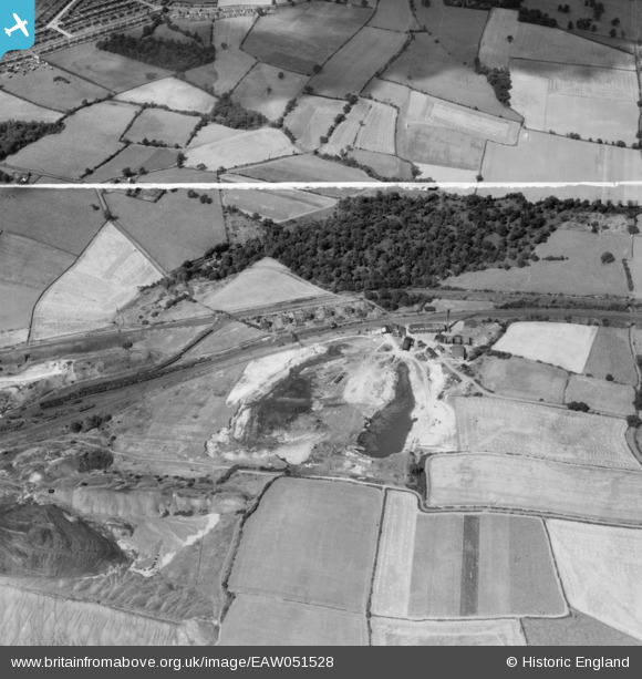 EAW051528 ENGLAND (1953). The Hoyland Brick Co Ltd Brickworks and environs, Upper Hoyland, 1953. This image was marked by Aerofilms Ltd for photo editing.
