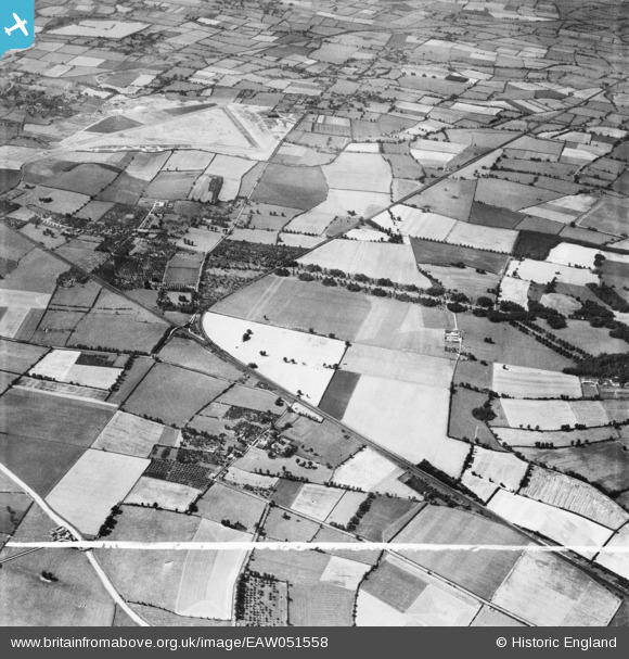EAW051558 ENGLAND (1953). Cheddington station and village and surrounding countryside, Cheddington, 1953. This image was marked by Aerofilms Ltd for photo editing.