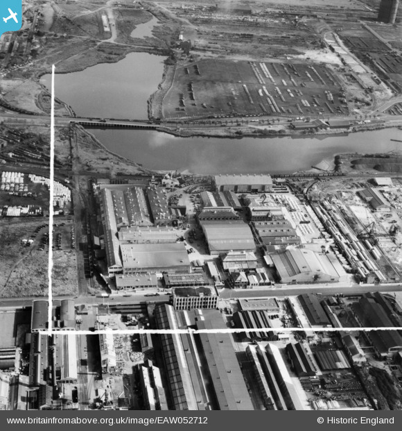 EAW052712 ENGLAND (1953). The Briggs Motor Bodies Ltd Works off Chequers Lane and Dagenham Breach, Dagenham, 1953. This image was marked by Aerofilms Ltd for photo editing.
