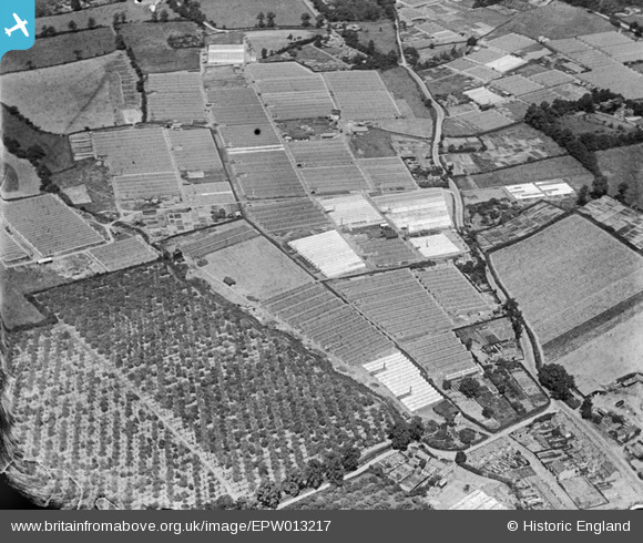 EPW013217 ENGLAND (1925). Glasshouses and orchards, Flamstead End, 1925