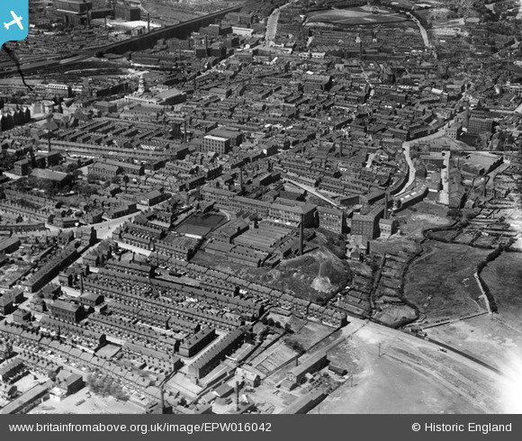 EPW016042 ENGLAND (1926). The Christy and Co. Hillgate Hat Manufactory and environs, Stockport, from the south-east, 1926