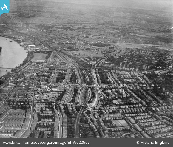 EPW022567 ENGLAND (1928). Upper Richmond Road and environs, Wandsworth, from the west, 1928