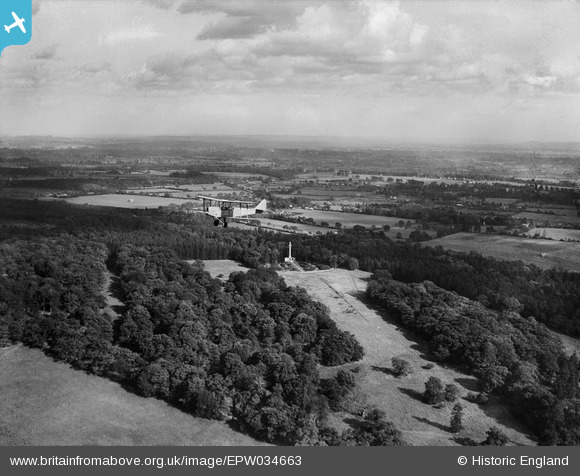 EPW034663 ENGLAND (1930). Avro 616 Sports "Avian" aircraft G-AAYU in flight, Langley Park, from the south-west, 1930