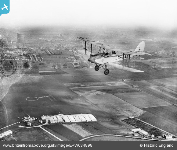 EPW034898 ENGLAND (1931). DH60G Gipsy Moth G-AAKE flying above Heston Air Park, Heston, 1931