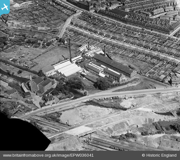 EPW036041 ENGLAND (1931). The Bobbers Mill Bleaching and Dyeing Works, Chadwick Road and Bobbers Mill Bridge under construction, Nottingham, 1931. This image has been produced from a damaged negative.