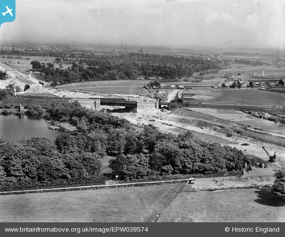 EPW038574 ENGLAND (1932). The East Lancashire Road (A580) under construction at Carr Mill Railway Junction, St Helens, from the north-west, 1932