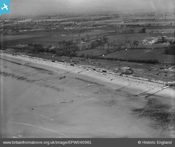 EPW040981 ENGLAND (1933). Beach huts along South Shoebury Common and the seafront, Southend-on-Sea, from the south, 1933