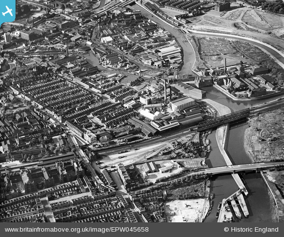 EPW045658 ENGLAND (1934). The Art Sales Ltd Works, the Three Mills Distillery and the surrounding residential area, Bromley, 1934